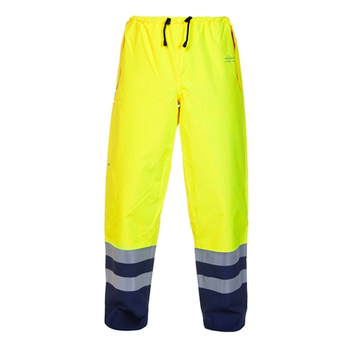 Elasticated waist with draw cord Side pockets with hook and loop fastening Adjustable leg opening with press stud closure Mesh polyester lining Simply no Sweat (SNS) 210gsm Polyester laminate fabric Highly breathable providing great comfort Durable and cost effective Smooth textile finish Conforms to EN ISO 20471:2013 Class 1 High Visibility Conforms to EN343:2003+A1:2007 Class 3:3 Conforms to EN ISO 13688:2013 General requirements for protective clothing