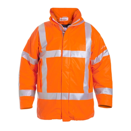 Concealed zip front with double storm flap cover using hook and loop fastening Hood in collar Detachable FR AS lining, Weesp HYD060350 to be ordered separately Side pockets with hook and loop closure Knit cuff in sleeves Adjustable elastic cuffs using press stud closure Flame retardant and anti-static 170 gsm 53% PU / 47% PES (FR Trevira CS Polyester) Conforms to the following standards: EN ISO 14116:2015 Index 1 Protection against limited flame spread EN 1149-5:2008 Anti Static- Material performance and design requirement EN ISO 20471:2013+A1:2016 Class 3 High Visibility EN 343:2003+A1:2007 Class 3 Water Penetration Class 1 Breathability EN ISO 13688:2013 General Requirements for protective clothing