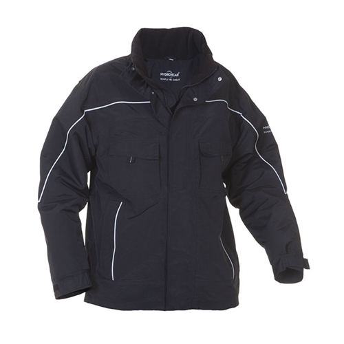 Concealed zip front with double storm flap cover and press stud closure Fixed fleece lining Fixed linings affect the breathability of a garment Adjustable hood in collar with draw cord Hood with innovative fixture for improved hearing through hood 2 chest pockets Reflective piping on back and front 2 inner pockets Napoleon pocket Adjustable cuffs using hook and loop 2 zip fastening side pockets Action back Simply no Sweat (SNS) 210gsm Nylon laminate fabric Highly breathable providing great comfort Durable and cost effective Smooth textile finish Conforms to EN343 Class 3 Water penetration Conforms to EN343 Class 3 Breathability