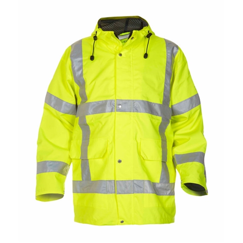 Concealed zip front with double storm flap cover and press stud closure Fixed hood with draw cord 2 front pockets with hook and loop fastening Inner pocket with hook and fastening 85cm length offering extensive cover Mesh polyester lining Used in conjunction with the Weert, quilted lining HYD040350 Simply no Sweat (SNS) 210gsm Polyester laminate fabric Highly breathable providing great comfort Durable and cost effective Smooth textile finish Conforms to EN ISO 20471:2013 Class 3 High Visibility Conforms to EN343:2003+A1:2007 Class 3:3 Conforms to EN ISO 13688:2013 General requirements for protective clothing