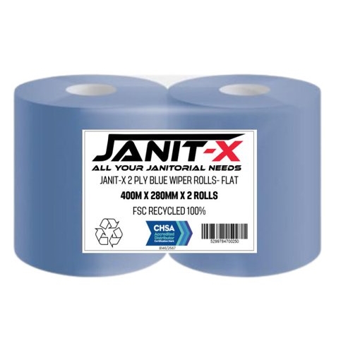 Janit-X Eco 100% Recycled XL Wiper/Forecourt Rolls Rolls Blue 2 x 400m x 280mm