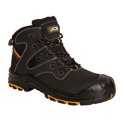 Black action nubuck Water resistant leather Reinforced heel protection Padded collar and bellows tongue Woven tape pull-on heel loop Antistatic Composite toecap and midsole Dual density rubber sole Anti scuff toe protector Heat resistant outsole SRC slip resistant EN ISO 20345:2011 S3 HRO SRC