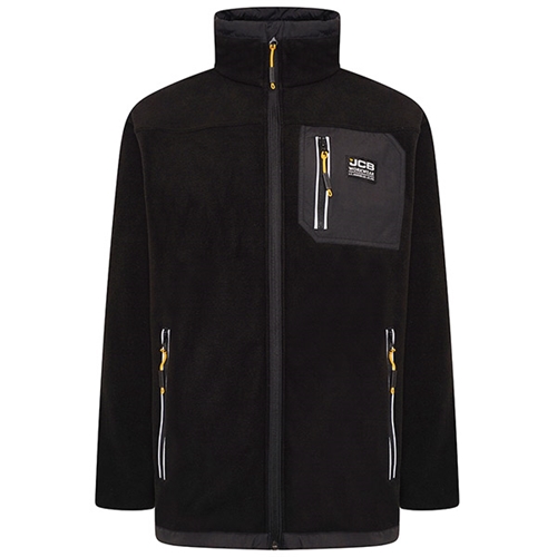 100% Polyester Polar Fleece, 300gsm Cordura fabric elbow patches for durability Ripstop front chest pocket with YKK zip and reflective piping Side pockets with YKK zip and reflective piping Woven JCB logo on chest JCB branding