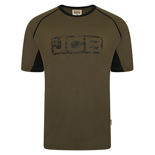 100% Cotton 180gsm Distressed JCB branding across chest Contrast collar & piping Woven JCB branding on right arm and left side seam