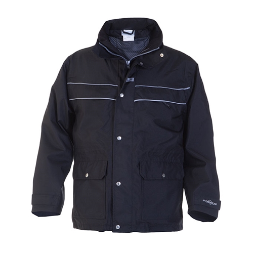 Concealed zip front with storm flap cover and press stud closure Adjustable hood in collar with draw cord Hood with innovative fixture for improved hearing through hood Dual reflective piping on back and front 2 chest pockets Napoleon pocket Adjustable cuffs using hook and loop 2 front pockets with flap and hook and loop closure Elasticated draw cords on hips and waist Matching Kiel fleece, HYD2602FL to be ordered separately Also can be used in combination with the Weert, quilted lining HYD040350 Simply no Sweat (SNS) 210gsm Polyester laminate fabric Highly breathable providing great comfort Durable and cost effective Smooth textile finish Conforms to EN343 Class 3 Water penetration Conforms to EN343 Class 3 Breathability
