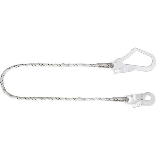 12mm Kernmantle rope with snap hook at one end and scaffold hook at the other end Loops protected by abrasion resistant thimbles Stitching protected by strong transparent sleeve Minimum breaking strength 22 kN Conforms to: EN 355