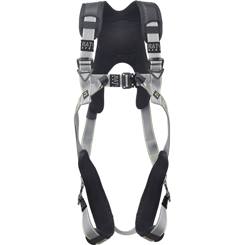 Attached Elements - 2 ideally positioned chest attachment textile loops and a dorsal attachment D-Ring for fall arrest. Adaptability - Fully adjustable shoulder straps, chest strap & thigh straps. Convenience - Shoulder straps have combination buckles and thigh straps are provided with automatic buckles for easy adjustment. Web keepers on shoulder straps have been provided for easy placement of free lanyards. Ergonomics - Specially cushioned mesh net has been used for better shock absorbtion and comfort of the user. Conforms to EN361:2002