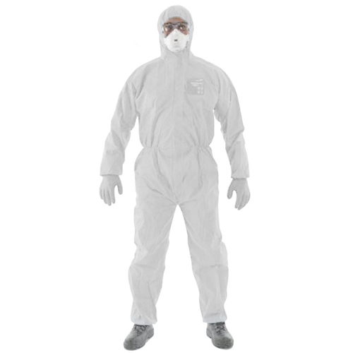 Highly breathable, antistatic suit used stripping, clear up or handling of asbestos, general maintenance, construction and contract cleaning 3-piece hood Elasticated hood, wrists, waist and ankles 2-way front zipper with re-sealable storm flap Finger loops Anti-static treatment Conforms to Type 5, 6, EN1073-2 and EN1149-5