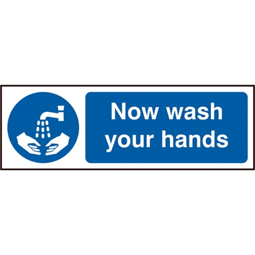 Now Wash Your Hands Sign White/Blue 300X100Mm