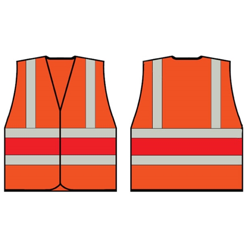 Hi-visibility waistcoat 100% polyester Hook and loop fastening Retro-reflective tape 2 x body bands Complete with red band in-between 2 x braces Conforms to EN ISO 13688:2013+A1:2021 Conforms to EN ISO 20471:2013 +A1:2018 Class 1 high visibility