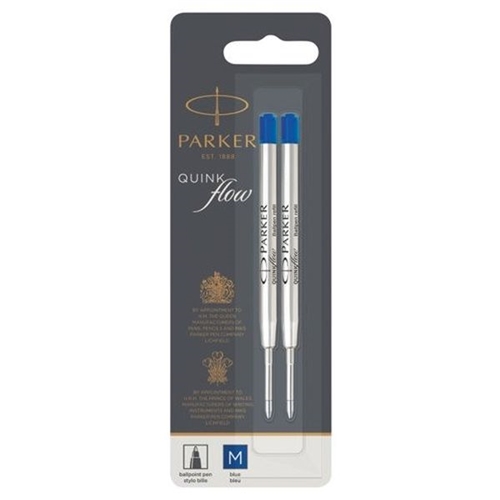 Parker Quink Flow Ballpoint Refill for Ballpoint Pens Medium Blue (Pack 2) - 1950373