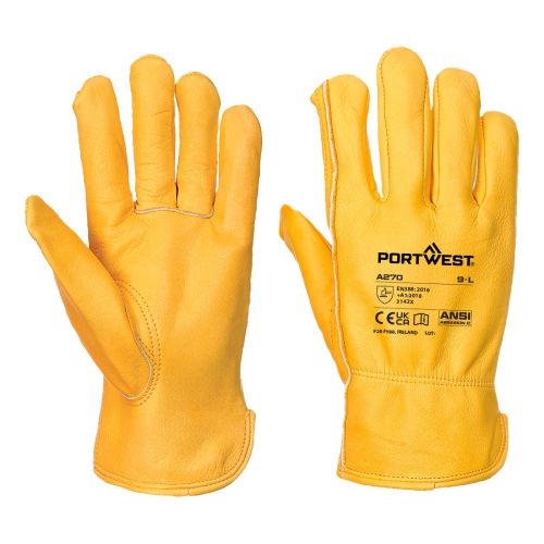 Portwest Leather Driver 100 Cow Grain Glove. Size/Fit XL/R, Tan. Style A270