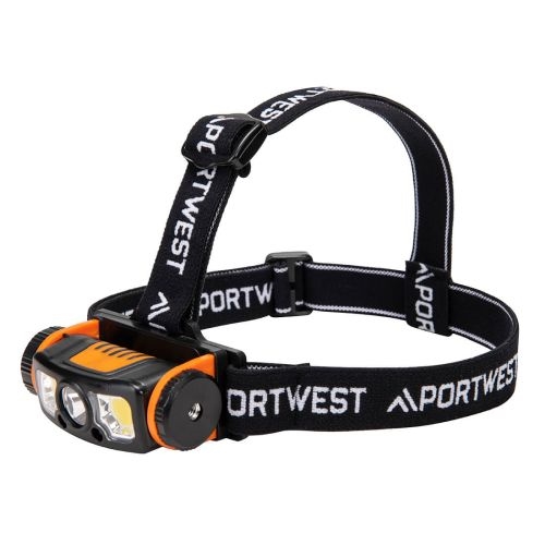 Portwest LED motion sensor USB head light. Size/Fit /O, Black/Orange. Style PA76