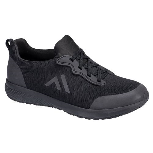 This lightweight occupational trainer is 100% metal free, and has an upper in stretchy textile aiding a more snug fit. It has a dual density phylon rubber outsole for superior grip and energy absorption.. Size/Fit 37/R, Black