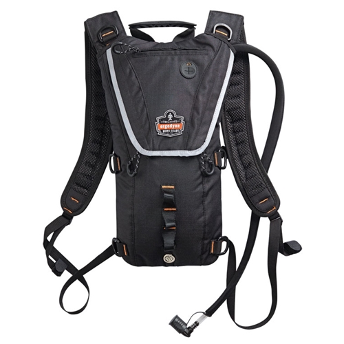 Premium Low Profile Hydration Pack: Lightweight and low profile, this portable water source offers unique features to help keep workers hydrated and safeFeatures Durable 600D water-resistant rip stop polyester shell Vented shoulder straps and back for maximum breathability 8mm EVA foam padding on shoulder straps for added comfort One zippered compartment, multiple d-rings and nylon daisy chain webbing for gear storage Reflective accent for higher visibility Insulated pack and tube keeps water cool 100% anti-microbial bite valve with cover to protect against contaminants Breakaway shoulder straps for added safety Dual Cap bladder featuring smaller (60mm) cap nestled into larger (80mm) cap for easy water and ice filling Capacity: 3L (3000mL) / 101oz / 3.3 hoursApplication Fire/Rescue/EMT Construction Freight/Baggage Oil/Gas Refining Drilling/Mining Landscaping/Grounds