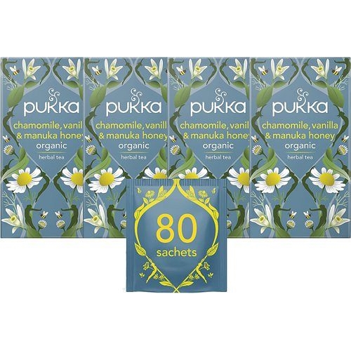Pukka Herbs Chamomile, Vanilla and Manuka Honey Organic Herbal Tea Chamomile, Vanilla, Honey and Fennel Perfect For Calming 20 Per Pack 20-160 Sachets