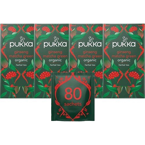 Pukka Herbs, Ginseng Matcha Green Organic Herbal Tea, Ginseng, Lemongrass, Ginger, Matcha and Green Tea, Perfect For Everyday Green Vitality, 20 Sachets