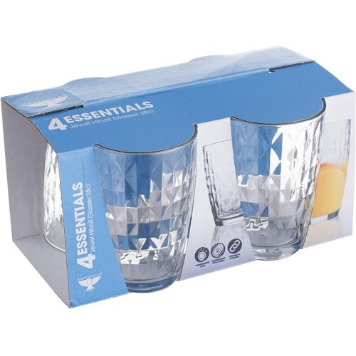 - STYLISH GLASSWARE :The Essentials Jewel mixers are perfect for serving fresh juices, cordials and milkshakes. Embellished with a subtle geometric diamond design, these durable, highly transparent glasses are suitable for everyday use and all occasions
