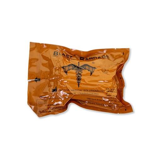Large non-adherent wound pad and integral elastic bandage Quick and simple Large, removable occlusive dressing Multipurpose e.g. to cover eviscerated bowel; as a robust burns dressing; as an occlusive dressing for multi-penetrating chest wounds Velcro® ‘Control’ strips to help prevent accidental unrolling of the elastic wrap during application, especially helpful during the dressing of amputations