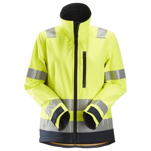 Snickers 1237 Allroundwork Womens High Visibility Softshell Jacket Class 2/3 Yellow/Navy Xtra Small [Regular]