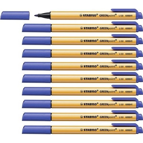 STABILO GREENpoint CO2 neutral Fibre Tip Sign Pen 0.8mm Line Blue (Pack 10) 6088/41