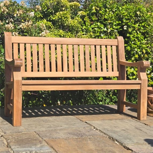 3 seat Memorial Bench. Teak wood, high contoured back. Heavy-duty, ethically sourced. Plaque attached to large message rail.