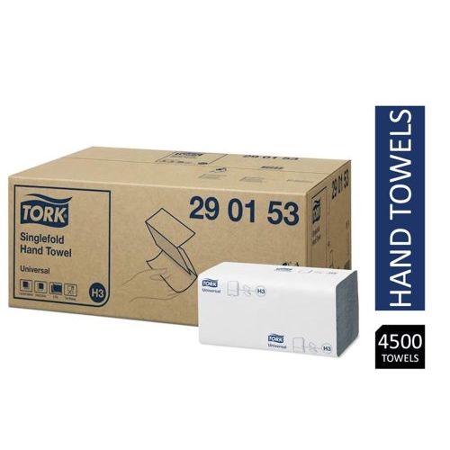 - Tork Easy Handling - packaging is easy to open, fold and transport‚ Tork is committed to creating a more sustainable life away from home by improving well-being in the work place, supporting sustainable consumption, and designing products and services that fit into a circular society.Tork Singlefold Paper Hand Towels 290153 - H3 Universal Folded Paper Towels for Singlefold Dispenser -Economic, 2-Ply, White - 15 x 300 SheetsTork Singlefold Paper Hand Towels, Universal The 2-ply paper towel in universal quality meets basic requirements for the washroom and is easy on the budget. In combination with the Tork C-Fold and singlefold towel dispensers, you get a system that hygienically provides individual towels without access waste.Advantages at a glanceFulfils basic requirements of paper towelsIdeal for moderately frequented washroomsFSC certifiedTork Easy Handling - packaging is easy to open, fold and transportThe folding towel with the particular good price-performance ratio: White paper towels in Universal quality, suitable for the H3 paper towel dispensers from TorkHygienic and economical paper towels, the associated H3 dispenser system with hygienic One-at-a-Time dispensing avoids waste.The EU Ecolabel certifies lower environmental impact than comparable productsIdeal for washrooms with medium visitor frequencyProfessional hygiene solutions from Tork.The Tork brand offers professional hygiene products and services to customers worldwide ranging from restaurants and healthcare facilities to offices, schools and industries. Our products combine quality, functionality and economy.Suitable for Tork Singlefold/C-Fold towel dispensers.Hygienic towel dispensers for low to medium traffic washrooms. Efficient via One-at-a-Time dispensing- Tork Singlefold/C-Fold Hand Towel Dispenser H3, White 553000- Tork Singlefold/C-Fold Hand Towel Dispenser H3, Black 553008- Tork Singlefold/C-Fold Mini Hand Towel Dispenser H3, White 553100- Tork Singlefold/C-Fold Mini Hand Towel Dispenser H3, Black 553108- Tork Singlefold/C-Fold Hand Towel Dispenser H3, White 208140Tork is committed to creating a more sustainable life away from home by improving well-being in the work place, supporting sustainable consumption, and designing products and services that fit into a circular society.