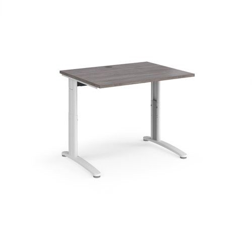 TR10 height settable straight desk 1000mm x 800mm - white frame, grey oak top