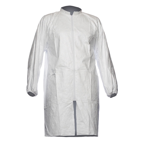 DuPont Tyvek® labcoat, model PL309. Specially designed for use with Tyvek® apparel, Tyvek® accessories can help offer enhanced protection for body parts that are more exposed to hazardous substances 2 Pockets Zipper closure Elasticated cuffs (tunnelled) Stitched internal seams PPE Category I Antistatic treatment (EN 1149-5)Applications include: pharmaceutical handling, chemical protection, lead and asbestos abatement/remediation, general maintenance/operations, spray painting and general clean-up, amongst many others
