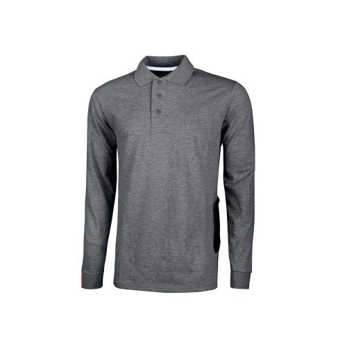 Long sleeve, slim fit, 3 button, polycotton pique shirt with collar. Stretch ribbed neck and sleeve hem. Contrasting white taped inner neck. Cell phone pocket/facial mask on the left side. White / reflective piping on the back of the neck and the right sleeve.