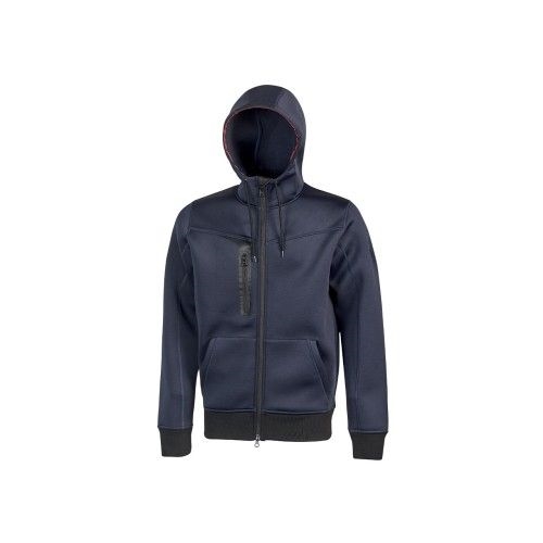 Workwear Full-zip fleece in scuba stretch jersey fabric.Hood with reflective tapped edge. Two front pockets. Multimedia pocket on the right side of the chest with earphone feed and Free Sound technology. Central zip with double slider.Ribbed cuffs and waistband, underarm ventilation holes. U-Power „lion head“ logo embroidered tone-on-tone on the left arm.Full-zip fleece for Farmers, Truckers, Carpenters, Electricians, Plumbers, Cleaning companies, Installers, Warehousemen, Builders