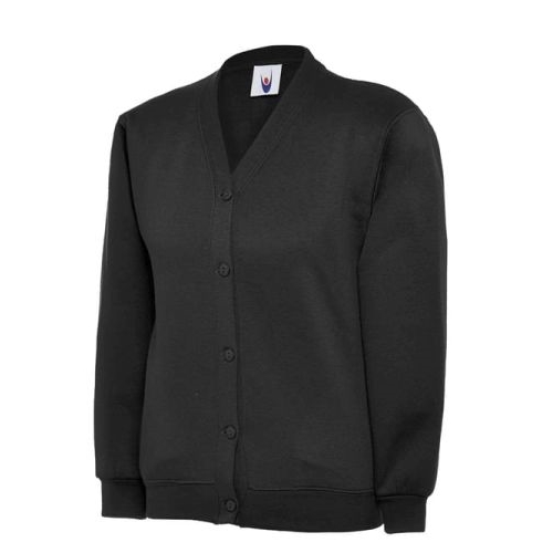The UC207 childrens cardigan is a 300gsm weight 50% polyester 50% cotton cardigan style sweatshirt from Uneek Clothing with five buttons, side seam pockets, lycra cuffs and twin needle stitching. It is perfect for any custom printed logo's or embroidered logo designs which can be added during the ordering process.