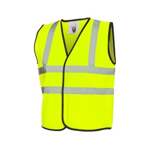 The Uneek childrens high visibility waist coat come with velcro fastening and 2 band and 2 brace arrangements of reflective strips. Edges are bound with black polyester. Perfect for schools and clubs when you're out and about and need to be seen.