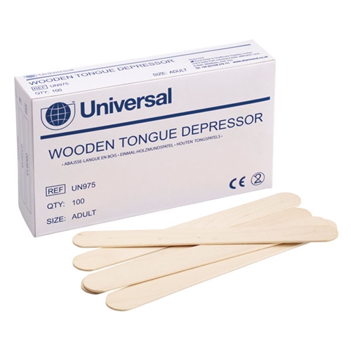 Flat smooth wooden tongue depressor with rounded tips and high tensile strength Used to depress the tongue to allow for examination of the mouth and throat Latex free Single use
