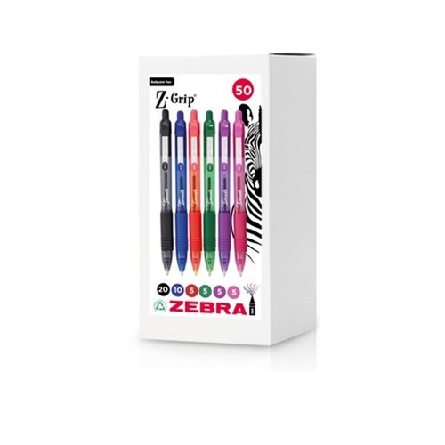 Zebra Z-Grip Smooth Ballpoint Pen 1.0mm Tip Assorted (Pack 50) - 02760